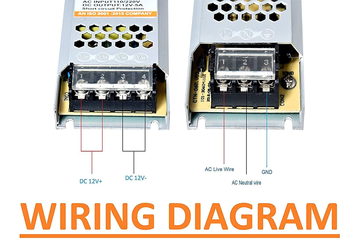 12V 5AMP 60W SLIM POWERSUPPLY for LED Strip Light Lamp/CCTV Camera/Security System/Radio/Computer Project