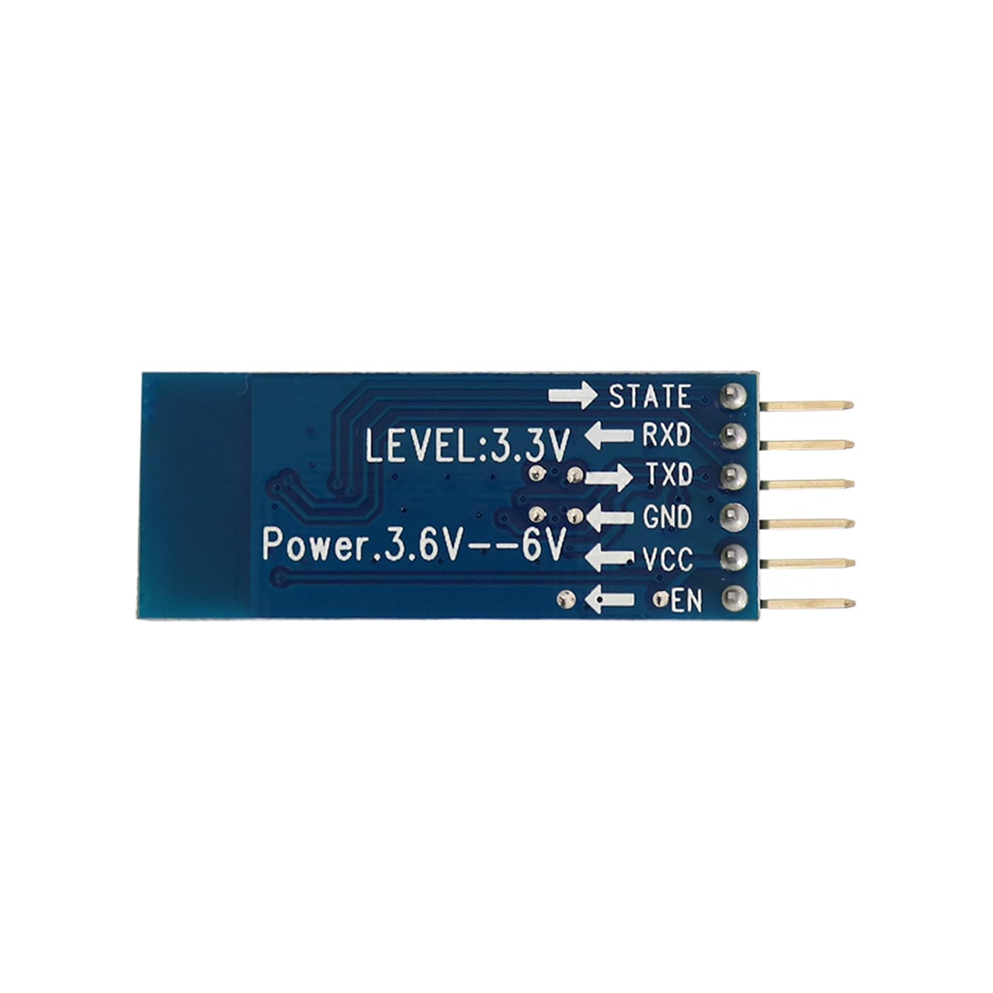 HC05 Bluetooth Module is used very widely as it full of features and is available at very cheap price. HC05 Module is a serial Bluetooth module with six pins, which are State, RXD, TXD, GND, VCC and En. State pin is connected to the onboard LED which indicates that Bluetooth is working or not. RXD and TXD receive and transmits serial data respectively. GND is connected to the ground of the circuit whereas VCC is connected to the 5V supply voltage. En is connected to the button present on the module which is used to switch between AT command mode and data mode. It is set low for data mode by default.